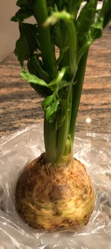 3 slices celery root (shown at right), diced