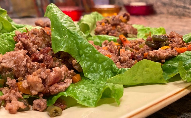 Contrasting flavors and textures help take the boredom out of dinner: this SIBO-friendly combination of warm pork, cool crispy lettuce, and salty/sweet/umami flavors is just the ticket!