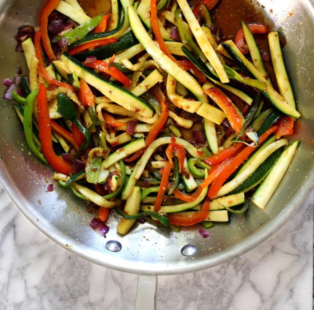 Zeema's mom told me an old trick she uses when someone is garlic and/or onion intolerant: compensate with cumin seed and mustard for an earthy, bright flavor.